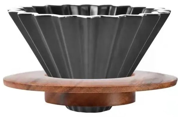قمع تقطير سيراميك اسود مع القاعدة الخشبية - مقاس 02